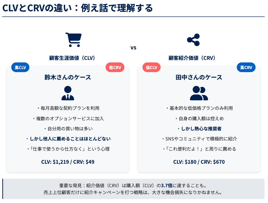 重要なのは、高CLV顧客が必ずしも高CRVではないという点です。