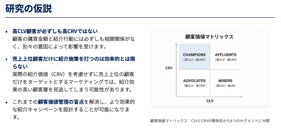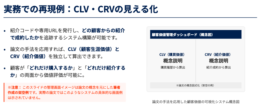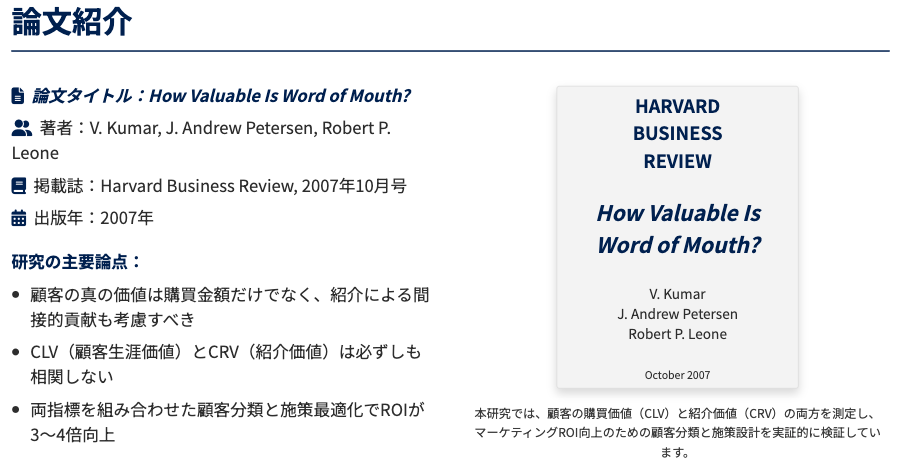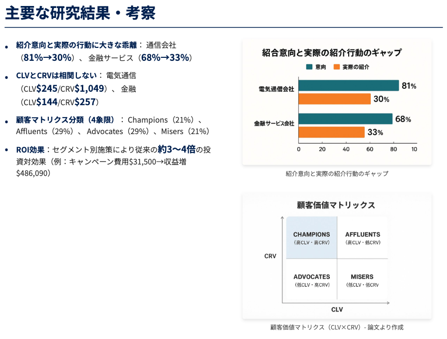 この論文の重要なメッセージは、「顧客価値は購買額だけでなく、紹介による利益も含めて測るべき」ということです。