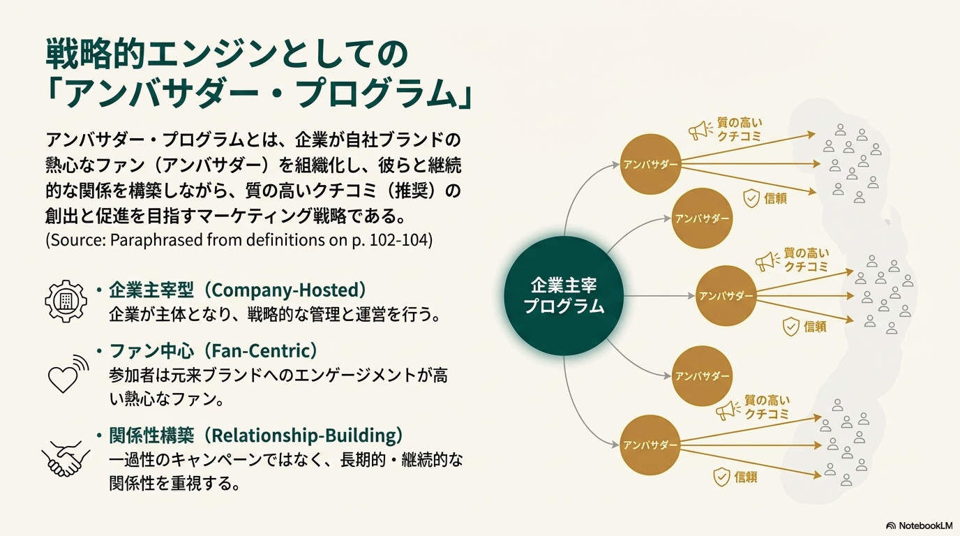 重要なのは、後者の「戦略的クチコミ創出」です。単にSNS上で話題になることを期待するのではなく、ブランドに深く共感する顧客層を組織化し、彼らが自然に推奨したくなる環境を整えることが鍵です。