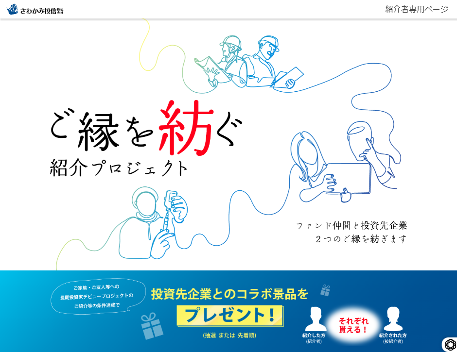 「ご縁を紡ぐ紹介プロジェクト」は、同社が展開する投資の学びと実践の機会を提供する企画「長期投資家デビュープロジェクト」の参加促進を主目的としたプロジェクト。