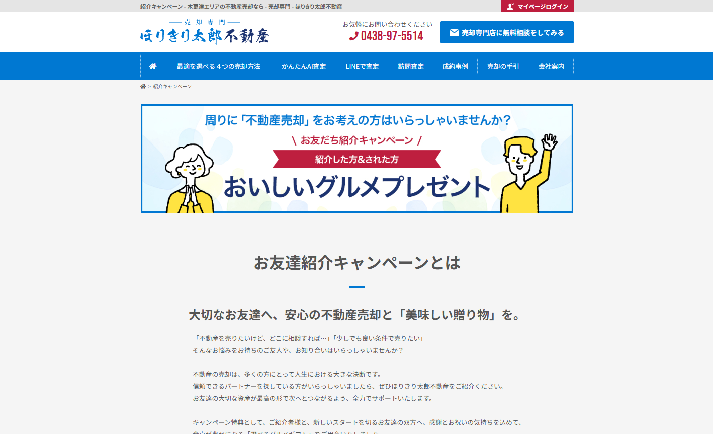 ※1 ほりきり太郎不動産の場合、紹介キャンペーンでのギフトは、紹介した人・された人の双方にグルメギフト3,700円相当を送付