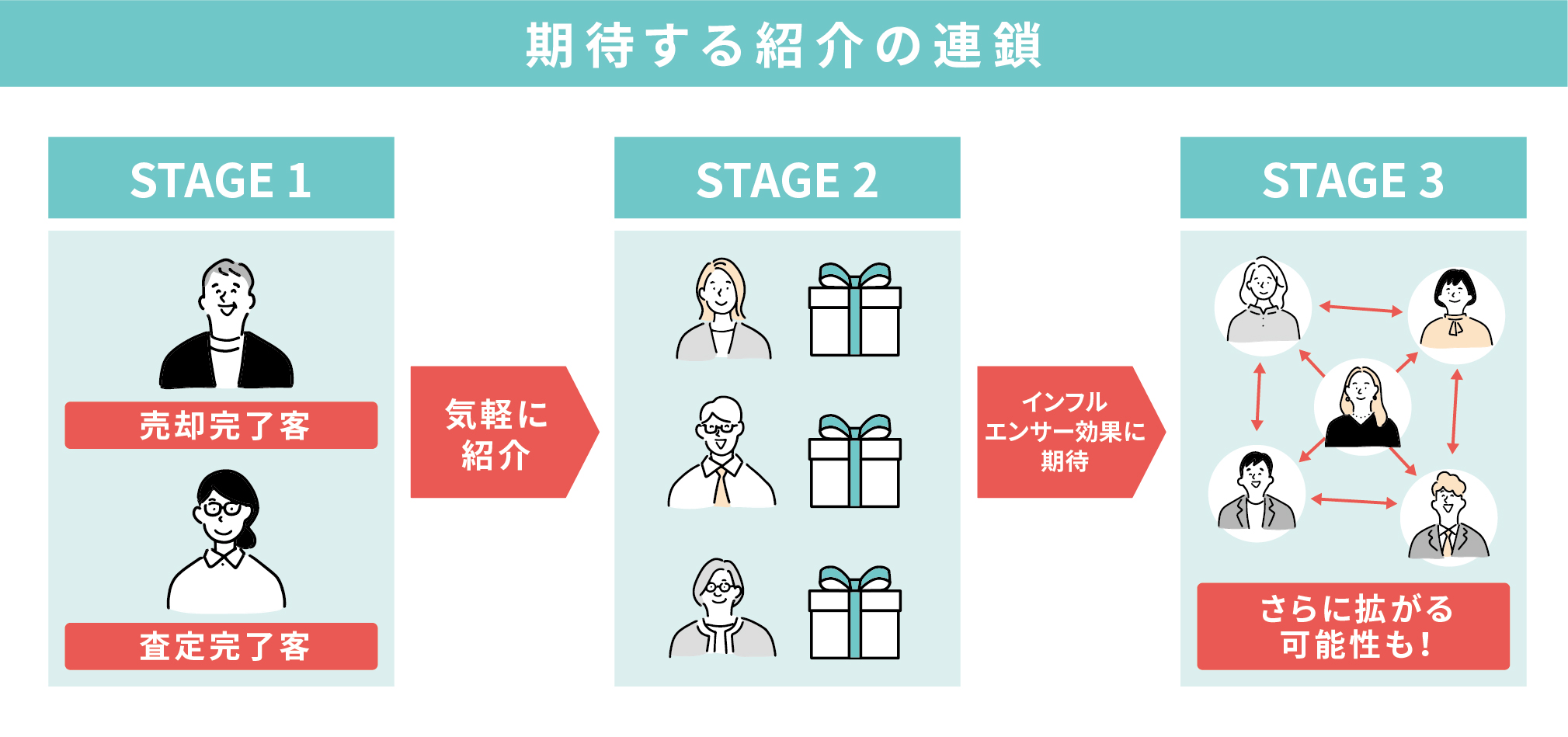 「誰か困っている人がいたら紹介をしてね」というアプローチができるのは、便利ですよね。うまくいけば、インフルエンサーのようにおひとりの方から何人もの紹介の輪が広がっていくことも、仕組みのなかでは可能です。そうなると非常に強力な武器になります。