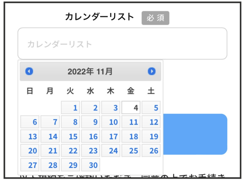 ユーザー様解答例 → 「2022/11/01」(カレンダー上から好きな日程を選択できる)