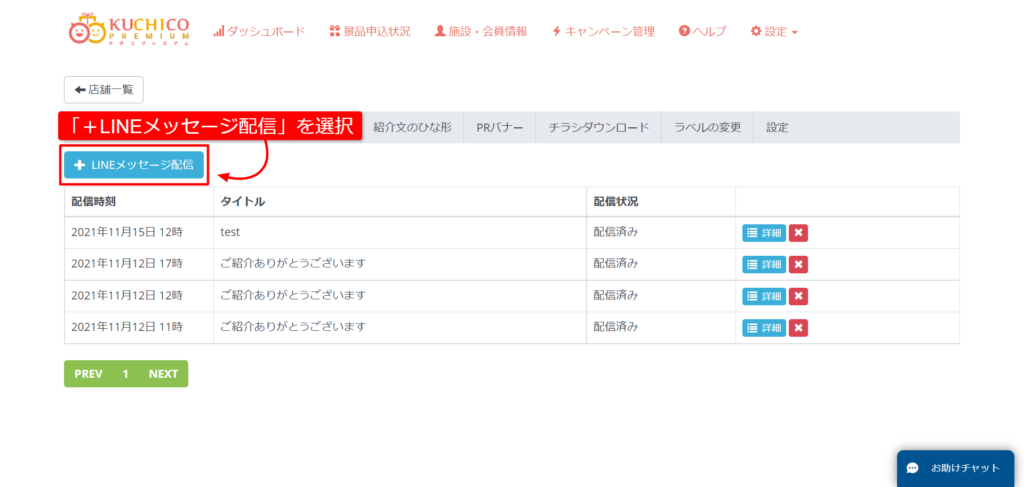「施設・会員情報」→「LINE配信」