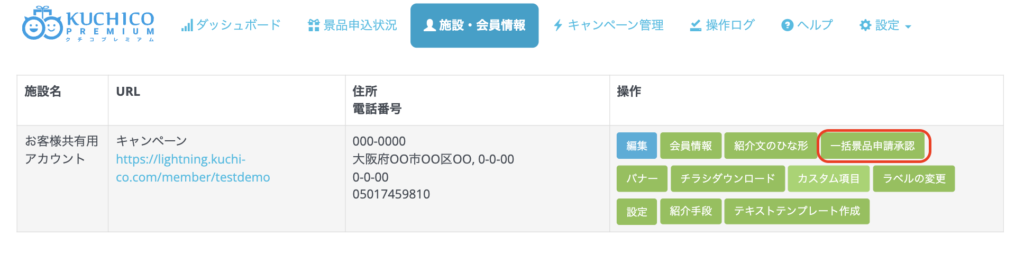 消込機能 KUCHICO PREMIUM 消込機能 はコメントを受け付けていません クチコプレミアムではお客様データ(CSVデータ)を読み込むことで、景品をお送りしたいお客様の一括承認を行う事が可能となっております。設定内容・操作に関しましては下記動画をご確認ください。 ※マニュアル動画にて、[一括景品承認]のボタンが「景品申込状況」のタブ内に表示されておりますが、現在は「施設•会員情報」のタブ内へ移動致しました。下記箇所になります。 <設定画面 例>左:CSVファイル読み込み設定画面右:読み込む会員様データ(Excel)